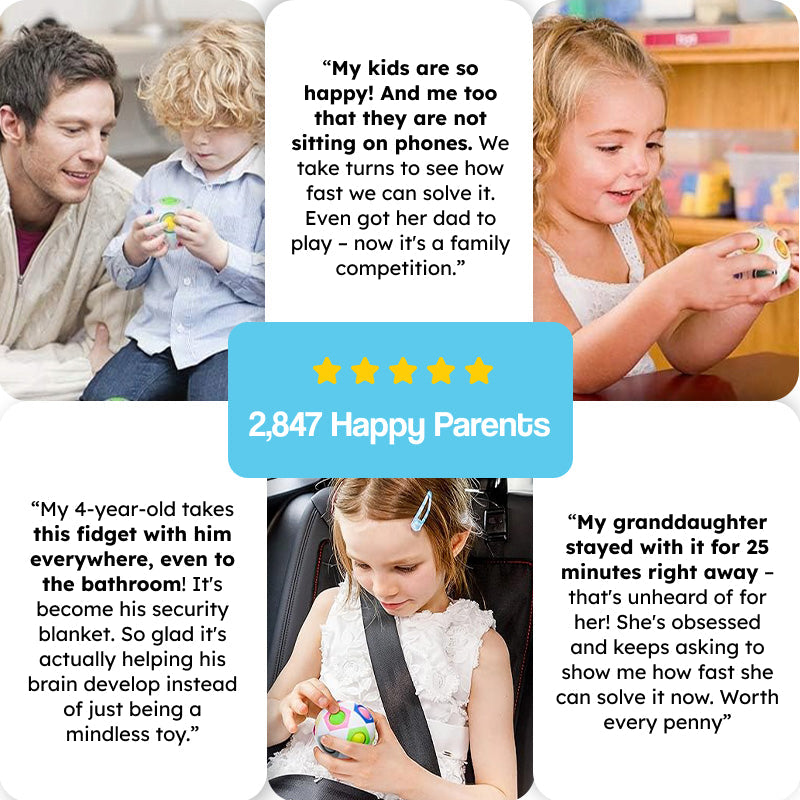 Absolutely! While the concept is simple, solving it requires real strategy and planning. Kids ages 3-4 love the sensory experience and color matching. Ages 6-10 get hooked on speed-solving and mastering techniques. Even adults find it surprisingly addictive – we've had grandparents admit to "borrowing" it from grandkids!