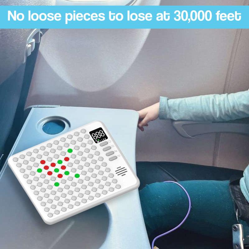 Perfect for airplanes, car seats, and waiting rooms. This compact gaming device fits anywhere and transforms dead time into brain-building moments. No loose pieces to lose, no setup required - just press power and play.