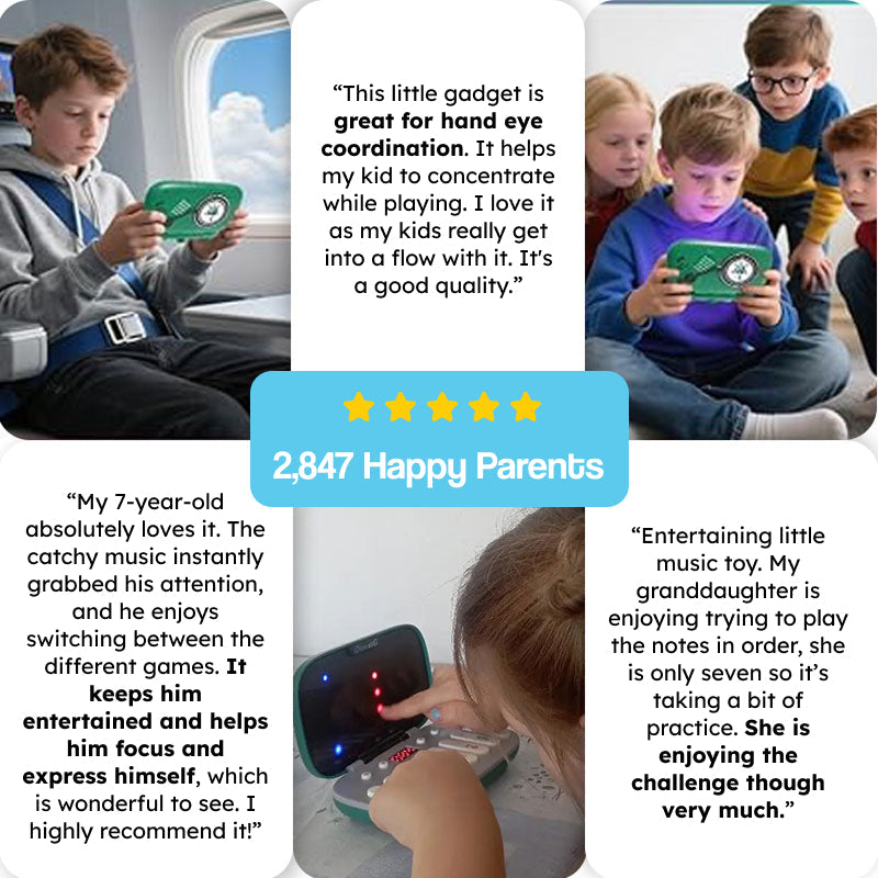 The rhythm game that makes every child feel like a rockstar. This isn't just another electronic toy – it's a screen-free musical adventure that lights up with every note, teaching rhythm, memory, and hand-eye coordination through pure play.